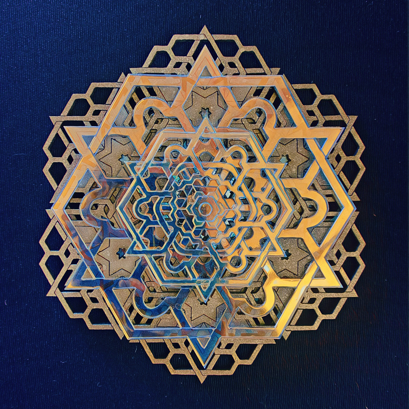 All original designs meditatively hand-drawn, translated into digital form and lasercut by the artist herself. A combination of sustainably sourced materials including fibreboard, acrylic and compact discs, painted, stained or varnished and glued together in unique combinations. They have lacunas at the back which provide an easy way to hang up on your wall, or alternatively thread your choice of rope or chain through to suspend.